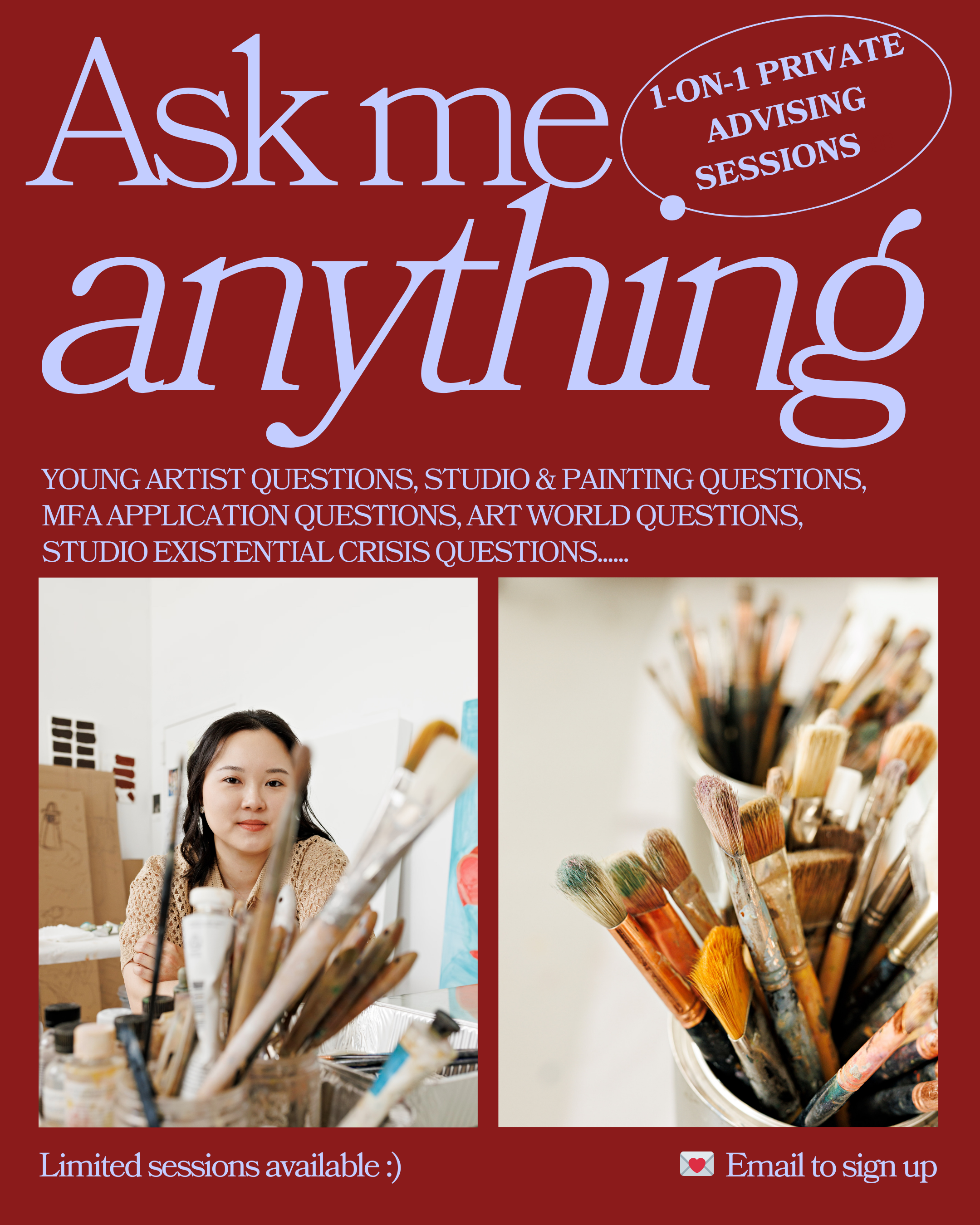 These sessions are especially suited for young artists, MFA applicants, early-career painters, and artists navigating transitional periods.